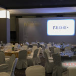 Se completó el set con una moqueta de color dorado, siempre en consonancia con la temática de los premios. En cuanto a la megafonía optamos por un micrófono de diadema color carne, preciso y discreto, que permitió a la speaker presentar a los premiados con completa libertad de movimientos.
